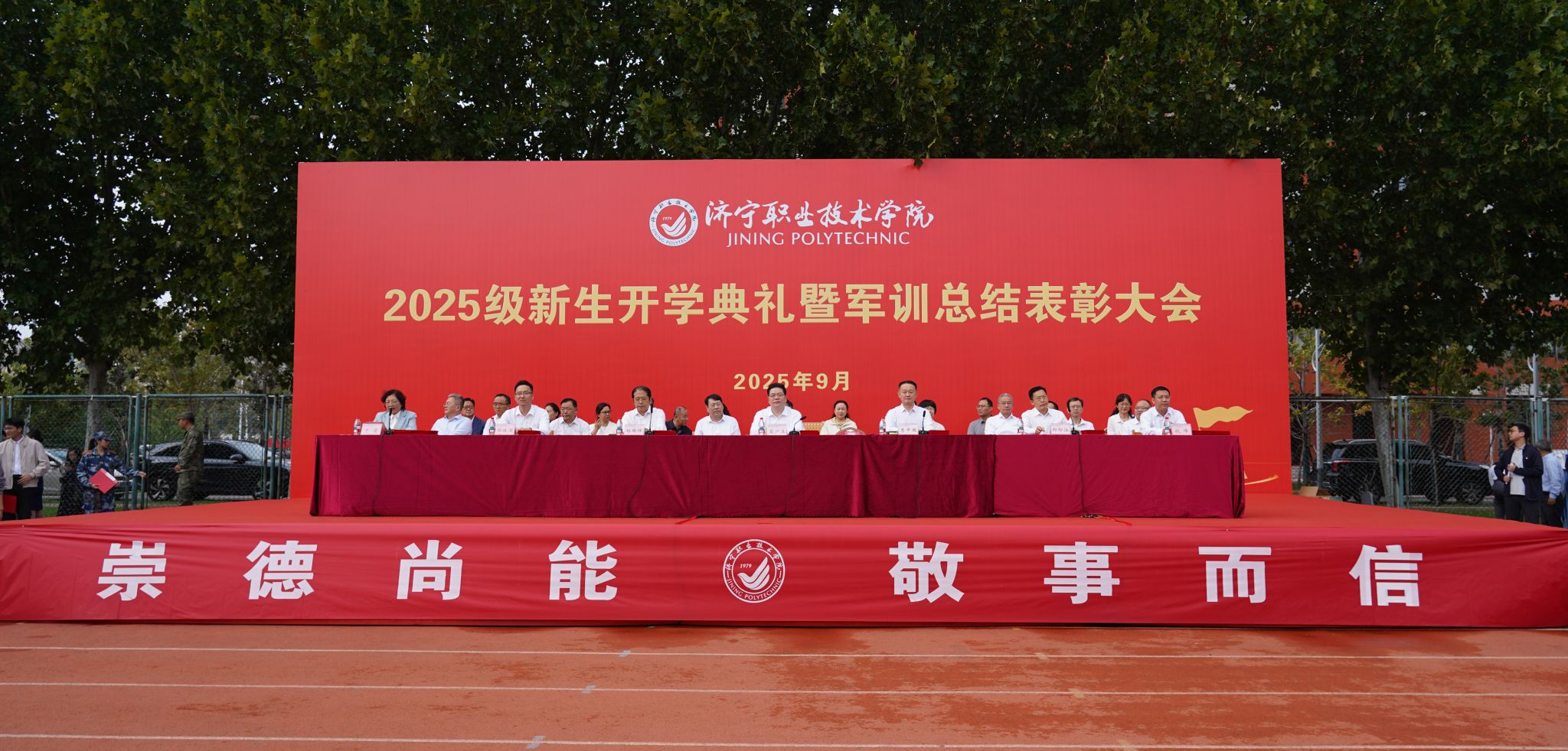 9月28日上午,我院2025級(jí)新生開(kāi)學(xué)典禮暨軍訓(xùn)總結(jié)表彰大會(huì)在中心運(yùn)動(dòng)場(chǎng)舉行。學(xué)院黨委書(shū)記高廣立,黨委副書(shū)記、院長(zhǎng)李中國(guó)及領(lǐng)導(dǎo)班子成員出席活動(dòng),各部門(mén)、單位負(fù)責(zé)人,新生輔導(dǎo)員及2025級(jí)全體新生參加活動(dòng)?;顒?dòng)由學(xué)院黨委委員、學(xué)生工作處處長(zhǎng)于凌主持。伴隨著雄壯的國(guó)歌聲,五星紅旗冉冉升起,2025級(jí)新生開(kāi)學(xué)典禮暨軍訓(xùn)總結(jié)表彰大會(huì)正式開(kāi)始。軍訓(xùn)成果匯報(bào)環(huán)節(jié),2025級(jí)新生方隊(duì)步伐整齊劃一、精神昂揚(yáng)奮進(jìn),依次正步通過(guò)主席臺(tái)接受檢閱,...