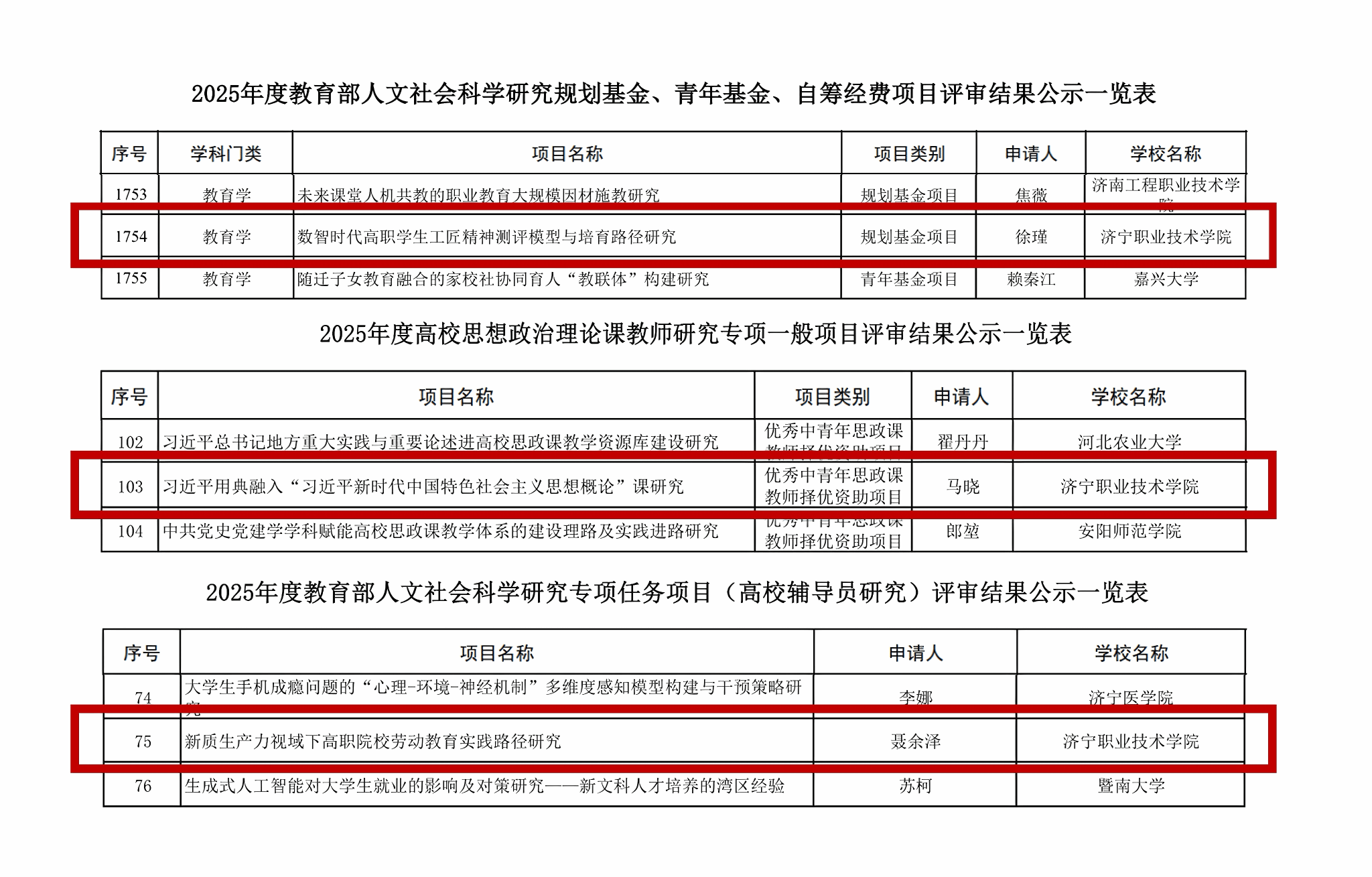 9月25日,教育部社會(huì)科學(xué)司公示了2025年度教育部人文社會(huì)科學(xué)研究一般項(xiàng)目、高校思想政治理論課教師研究專(zhuān)項(xiàng)一般項(xiàng)目擬立項(xiàng)名單,我院3個(gè)項(xiàng)目入選。其中,徐瑾教授主持的《數(shù)智時(shí)代高職學(xué)生工匠精神測(cè)評(píng)模型與培育路徑研究》入選教育部人文社會(huì)科學(xué)研究規(guī)劃基金項(xiàng)目;馬曉老師主持的《習(xí)近平用典融入“習(xí)近平新時(shí)代中國(guó)特色社會(huì)主義思想概論”課研究》入選高校思想政治理論課教師研究專(zhuān)項(xiàng)一般項(xiàng)目;聶余澤老師主持的《新質(zhì)生產(chǎn)力視域下高職院校勞動(dòng)教育實(shí)踐路徑研究》...