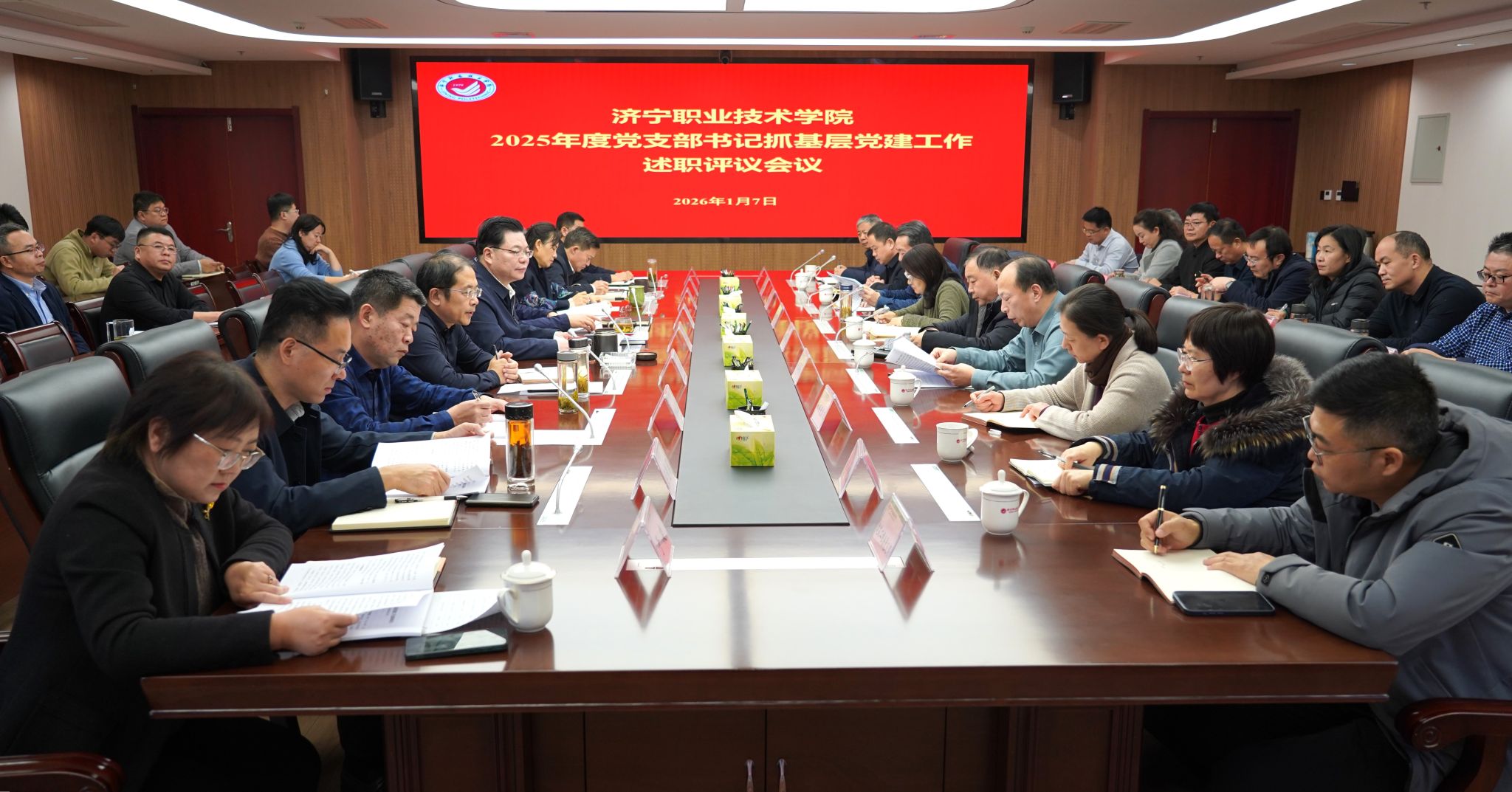 1月7日,我院召開2025年度黨支部書記抓基層黨建工作述職評議會議。學院領(lǐng)導班子成員、機關(guān)黨總支書記和各黨支部書記參加會議。學院黨委書記高廣立主持會議并作點評講話。