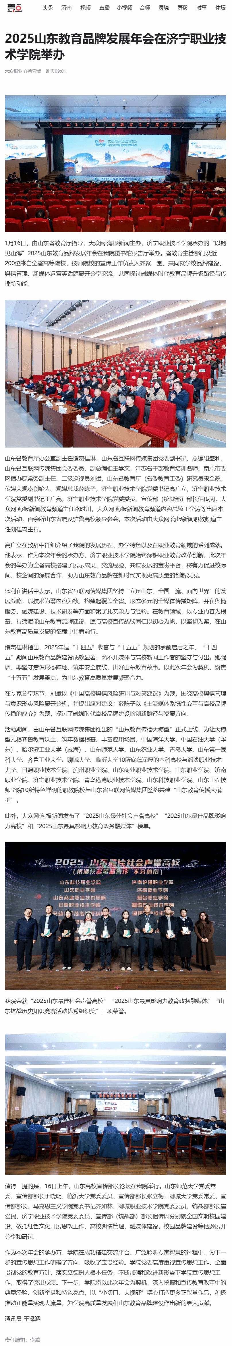齊魯壹點(diǎn) | 2025山東教育品牌發(fā)展年會(huì)在濟(jì)寧職業(yè)技術(shù)學(xué)院舉辦